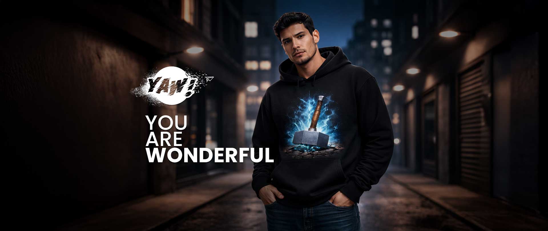 Somos una tienda de ropa urbana comercializamos vestimenta cálida con el 80% de algodón, nuestro producto estrella son los hoodies personalizados, también contamos con jogger, vermudas, camisetas, jackets, gorras, puedes bordarlo o estamparlo a tu gusto o generar tu propio diseño, nosotros lo creamos - Marca tu propio estilo con YAW - You Are Wonderful.